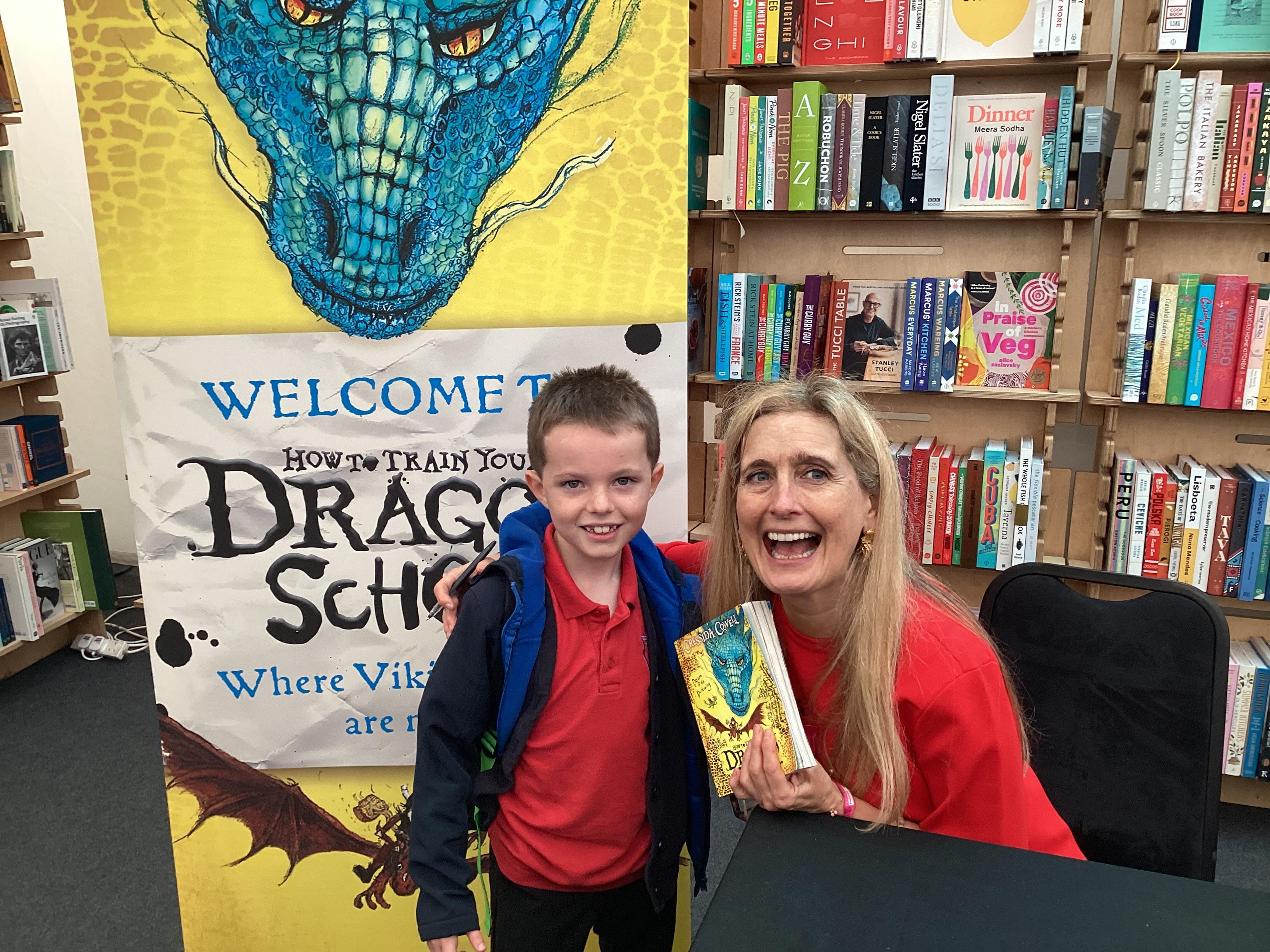 An inspirational visit to Cressida Cowell, creator and illustrator of the How to Train your Dragon series , at the Literature Festival - we even got to meet our author !