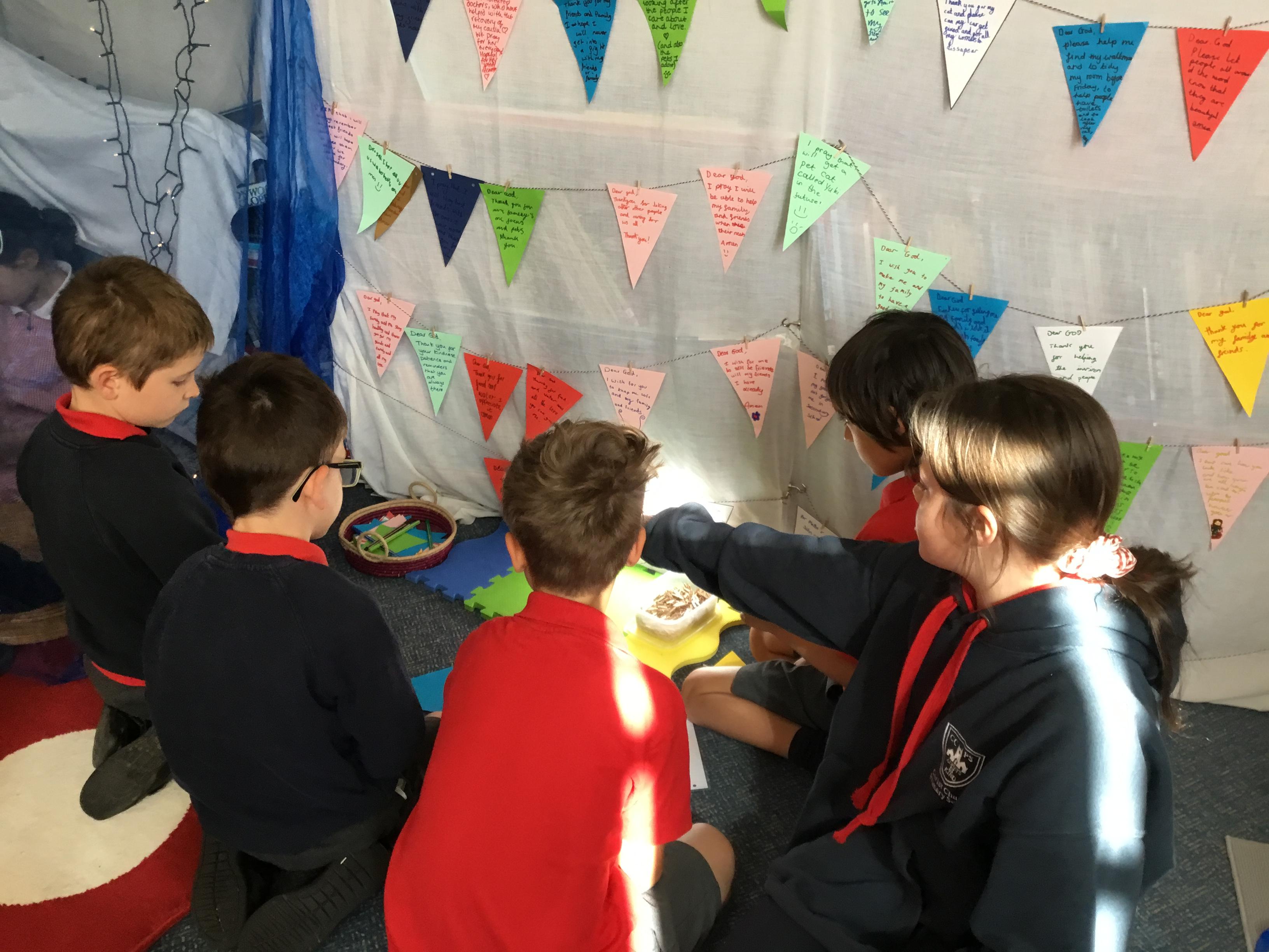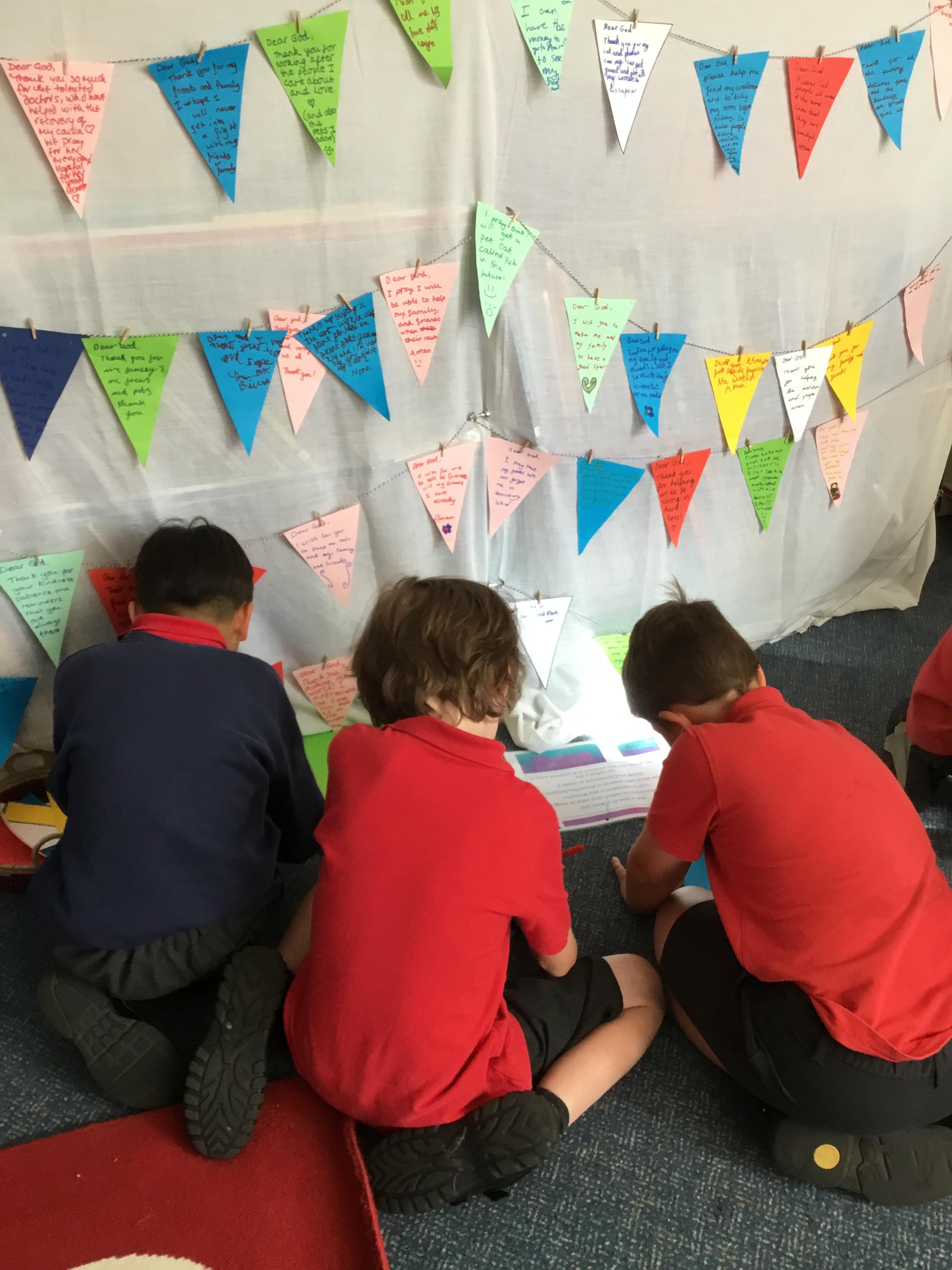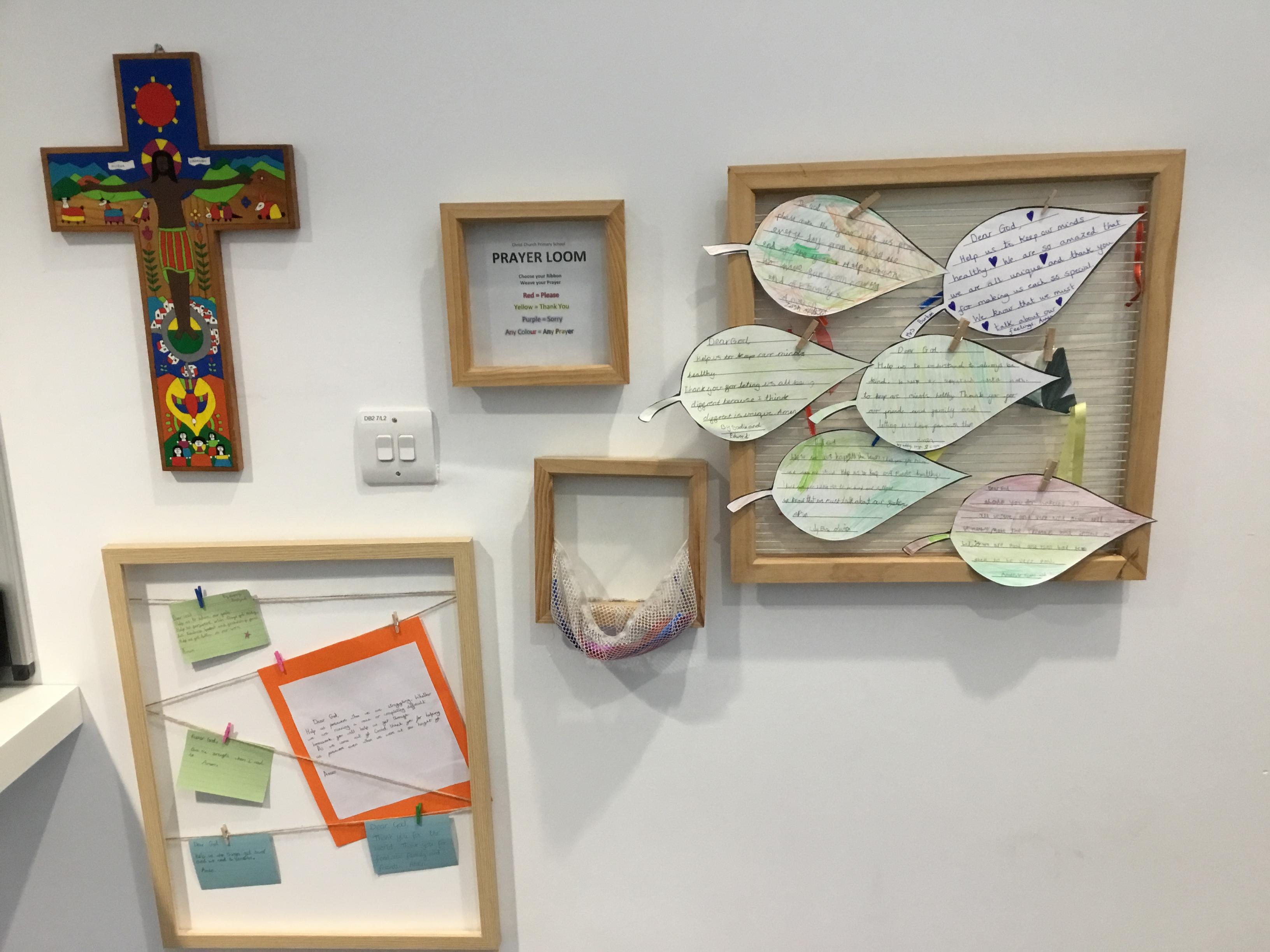 Our prayer wall allows children to reflect and have the opportunity to pray. We update this space regularly, spending time in class worship to discuss prayer, write prayers and learn how to pray.