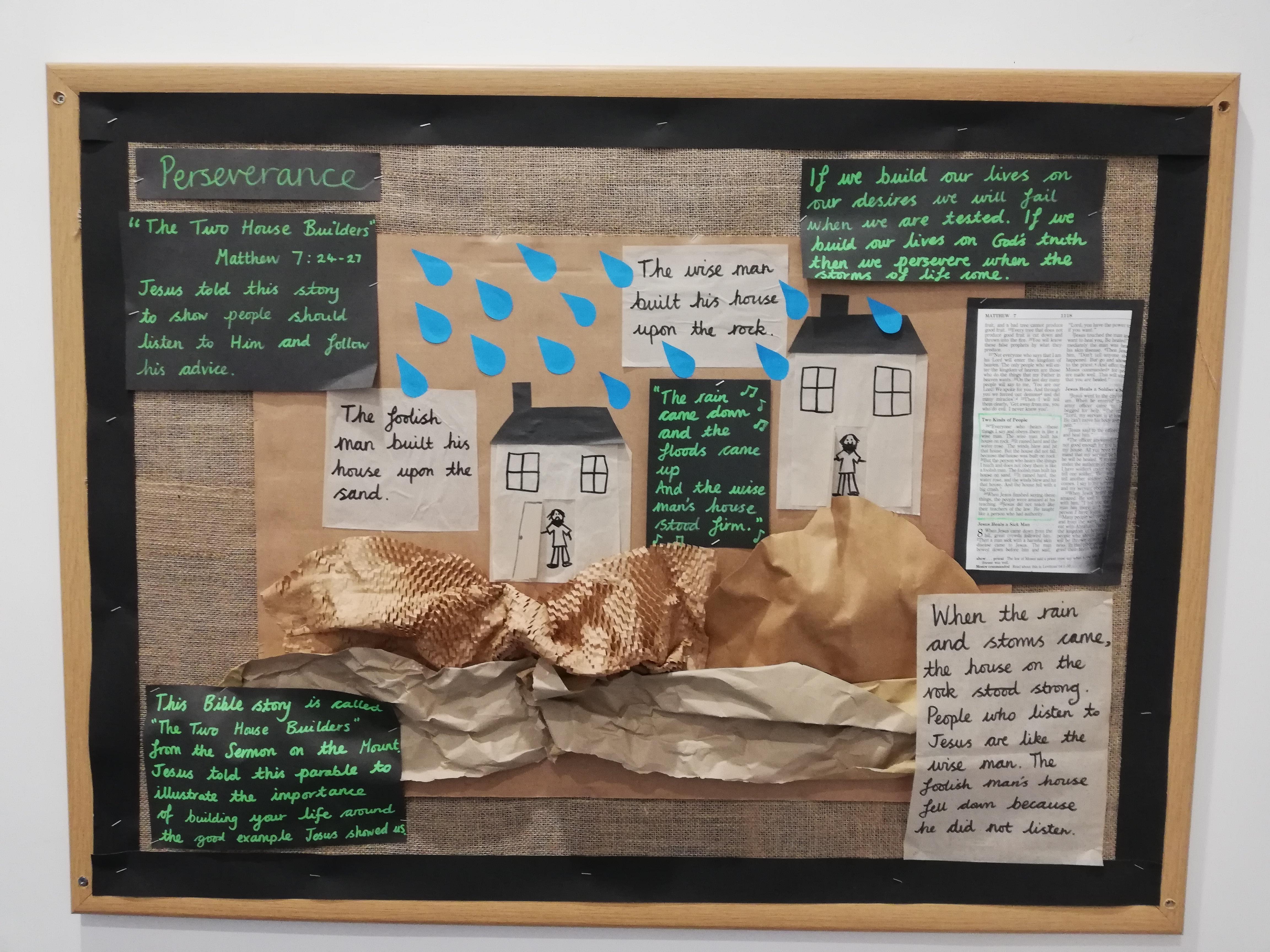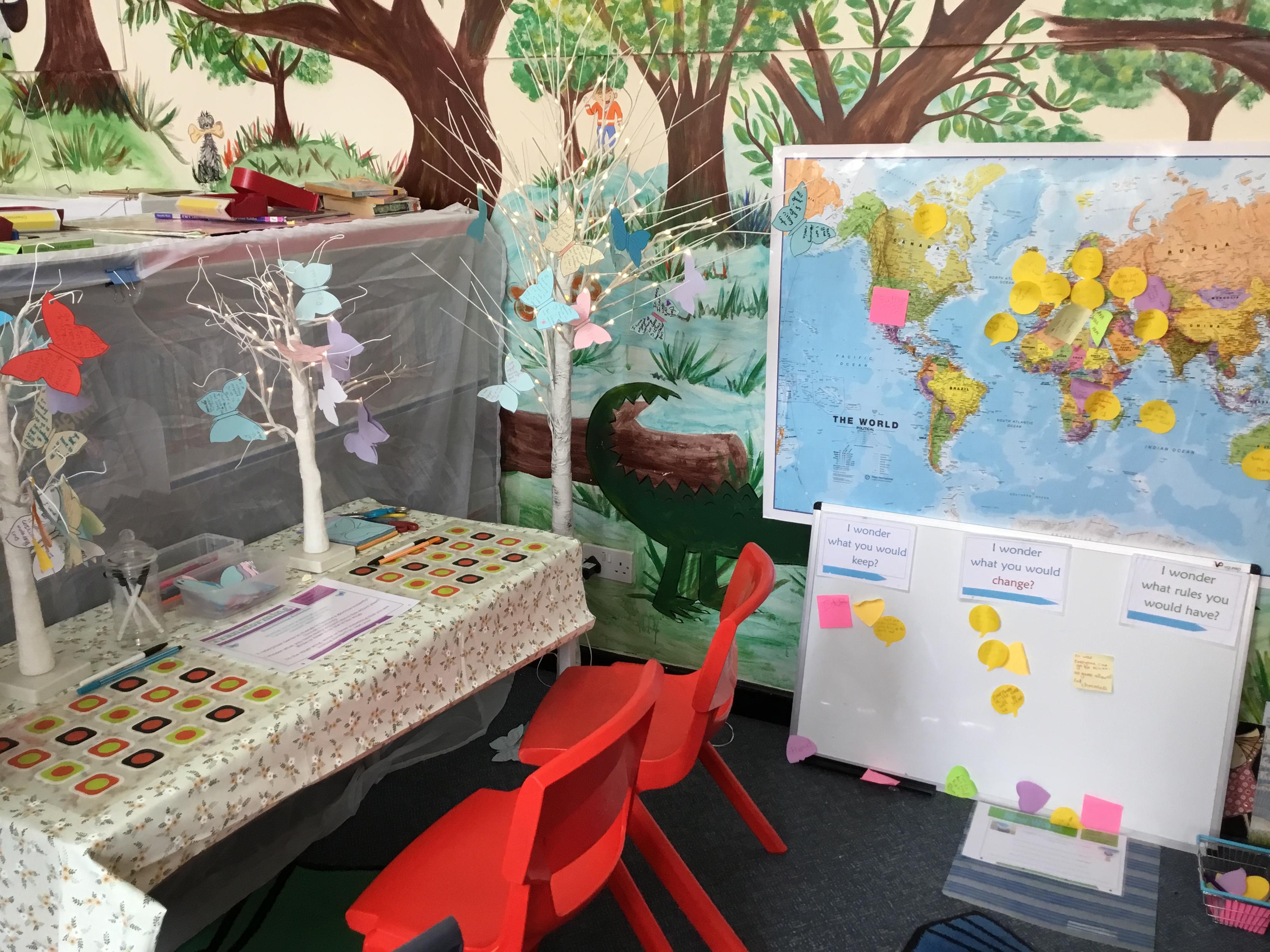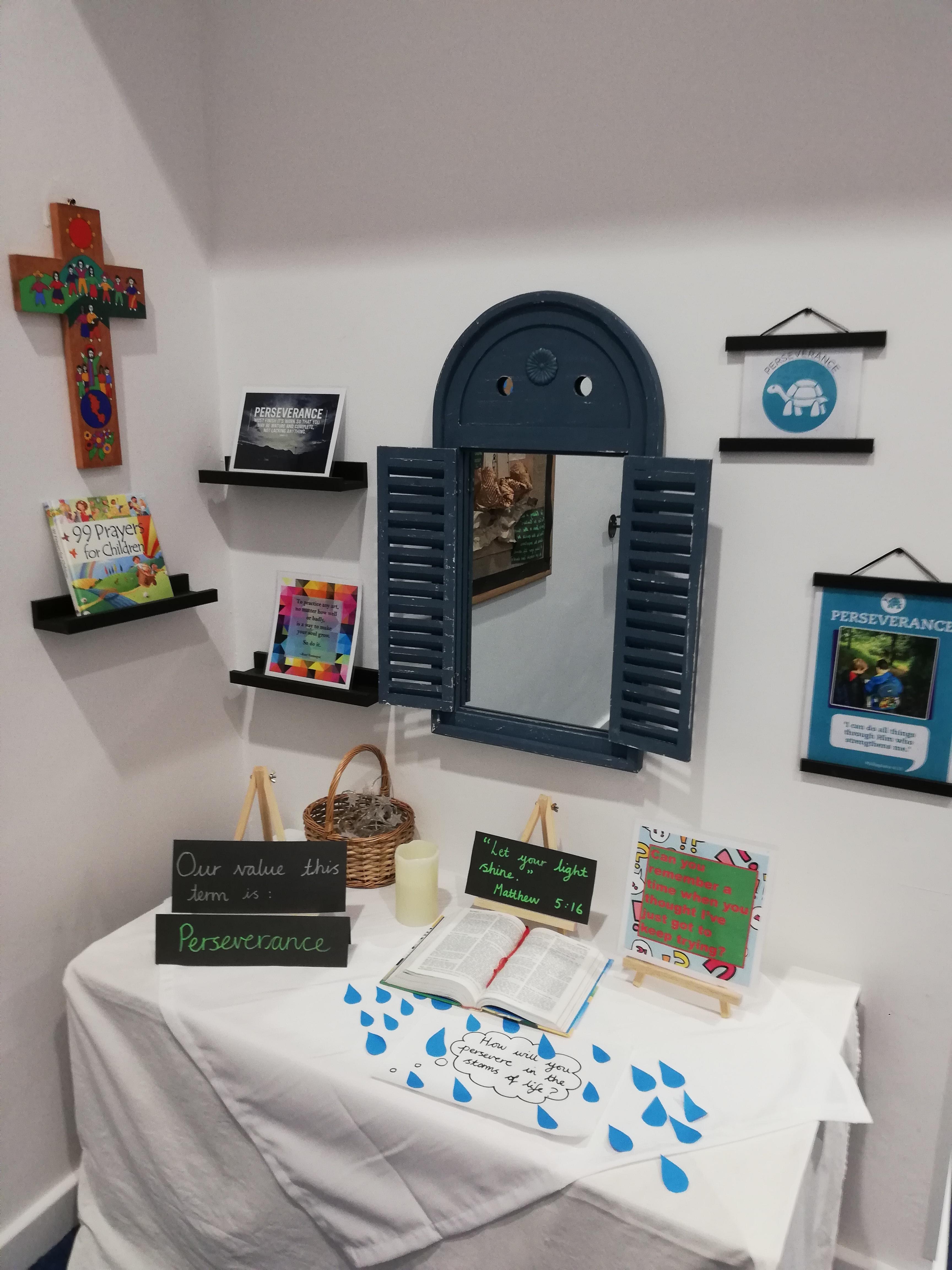 Our prayer wall allows children to reflect and have the opportunity to pray. We update this space regularly, spending time in class worship to discuss prayer, write prayers and learn how to pray.