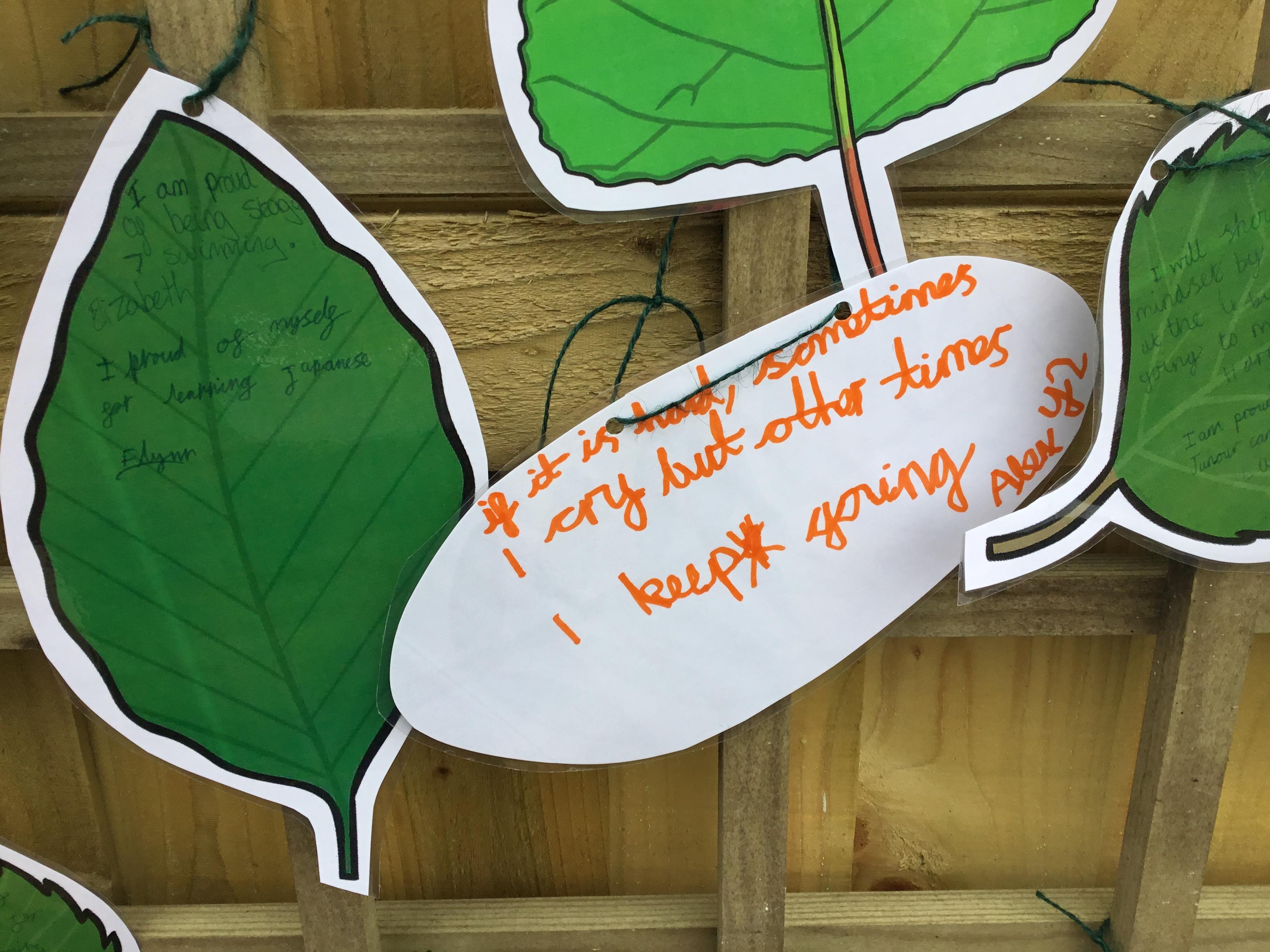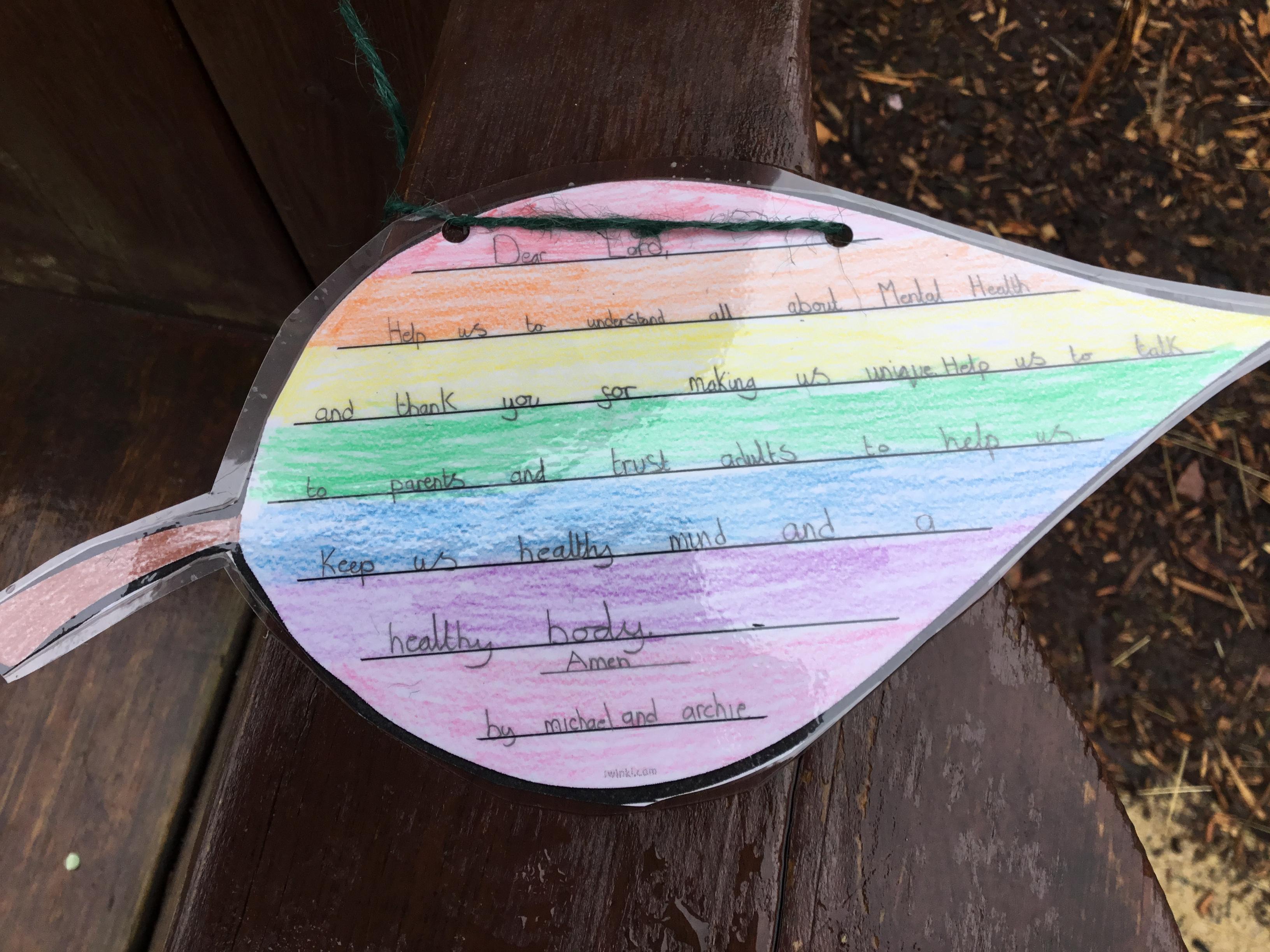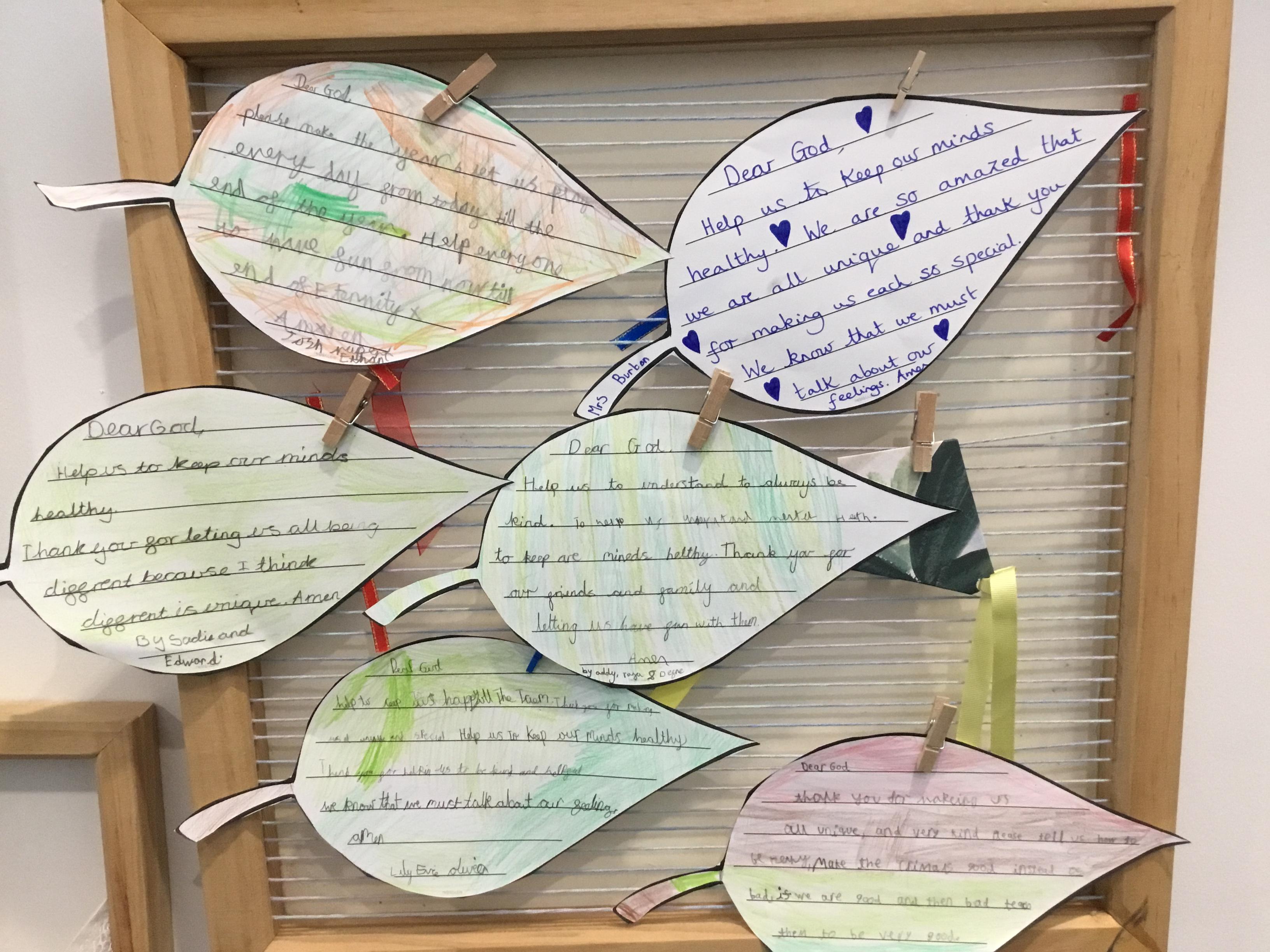 We have a new Spiritual Garden space where we can sit and reflect. This latest display shows our reflections on Children's Mental Health Week. Children reflected on how they have grown as a person, thought about their own mental health and wrote prayers asking God for encouragement.