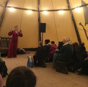 We listened to a story in the Story Shack before having