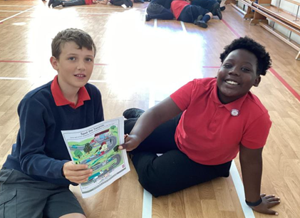On Friday, Year 2 walked to Cheltenham Literature Festival to have a draw-a-long session with Rob Biddulph. We heard lots of his new stories and drew a rhino wearing a top hat with him!
