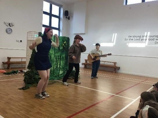 Pupils in Years 1-2 enjoyed a special treat this week when 3 BTec Drama Students came to perform a 30 minute fun, educational show they wrote for this age group as part of their final assessments. The children really enjoyed the singing, acting and silliness alongside learning about the life cycle of different woodland creatures. We were so impressed they had written the songs, the script and the storyline themselves!