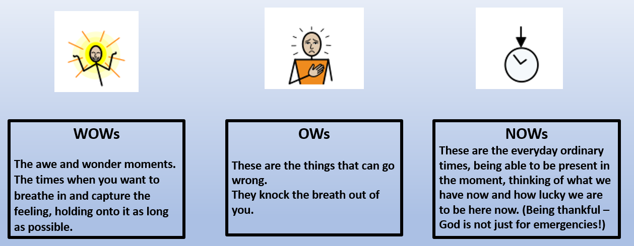 Time for prayer: Prayer is an important aspect of the school day. We have school prayers which we say at the end of the day and before lunch. Praying together helps us to worship together as a family. We also have a prayer area in school, each week there are different activities laid out for children to interact with, say their own prayers and have quite times of reflection.
