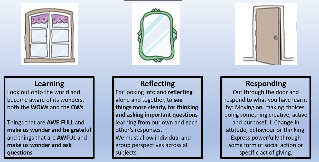 Time for reflection: During our Collective Worship, time is given for children to sit quietly and reflect on the message that they hear and think about ways in which they might live out what they have heard.