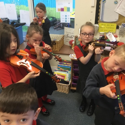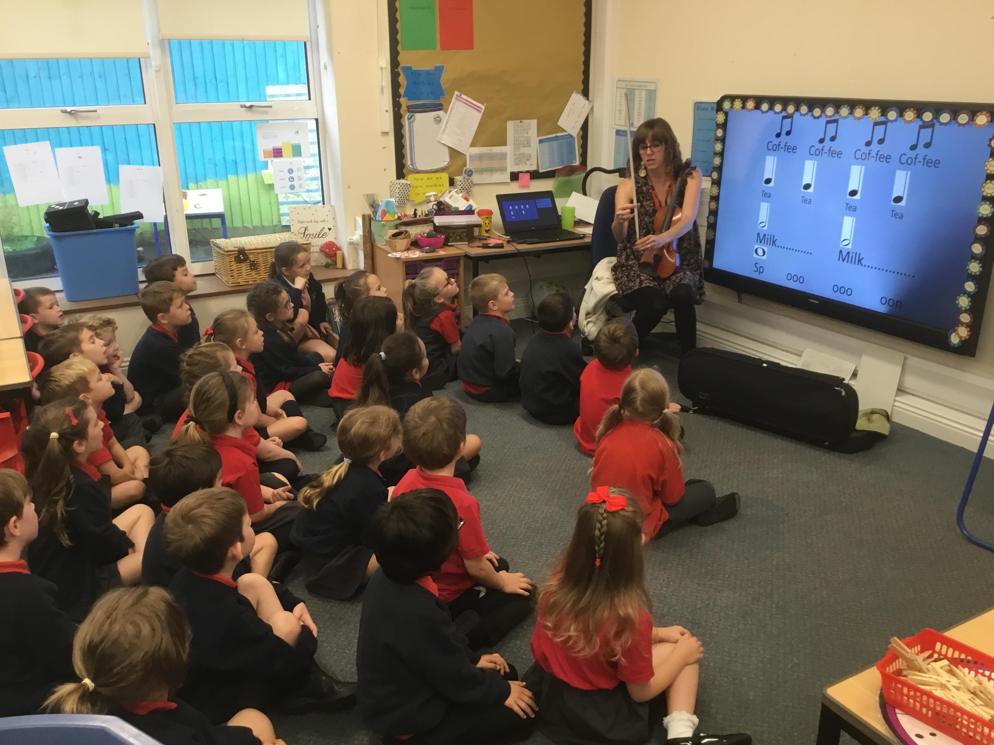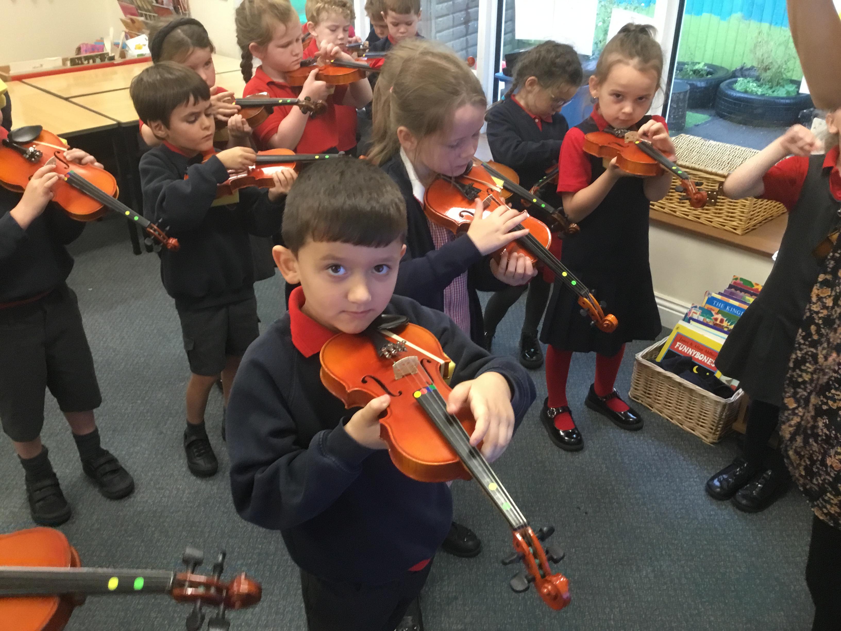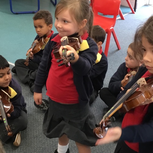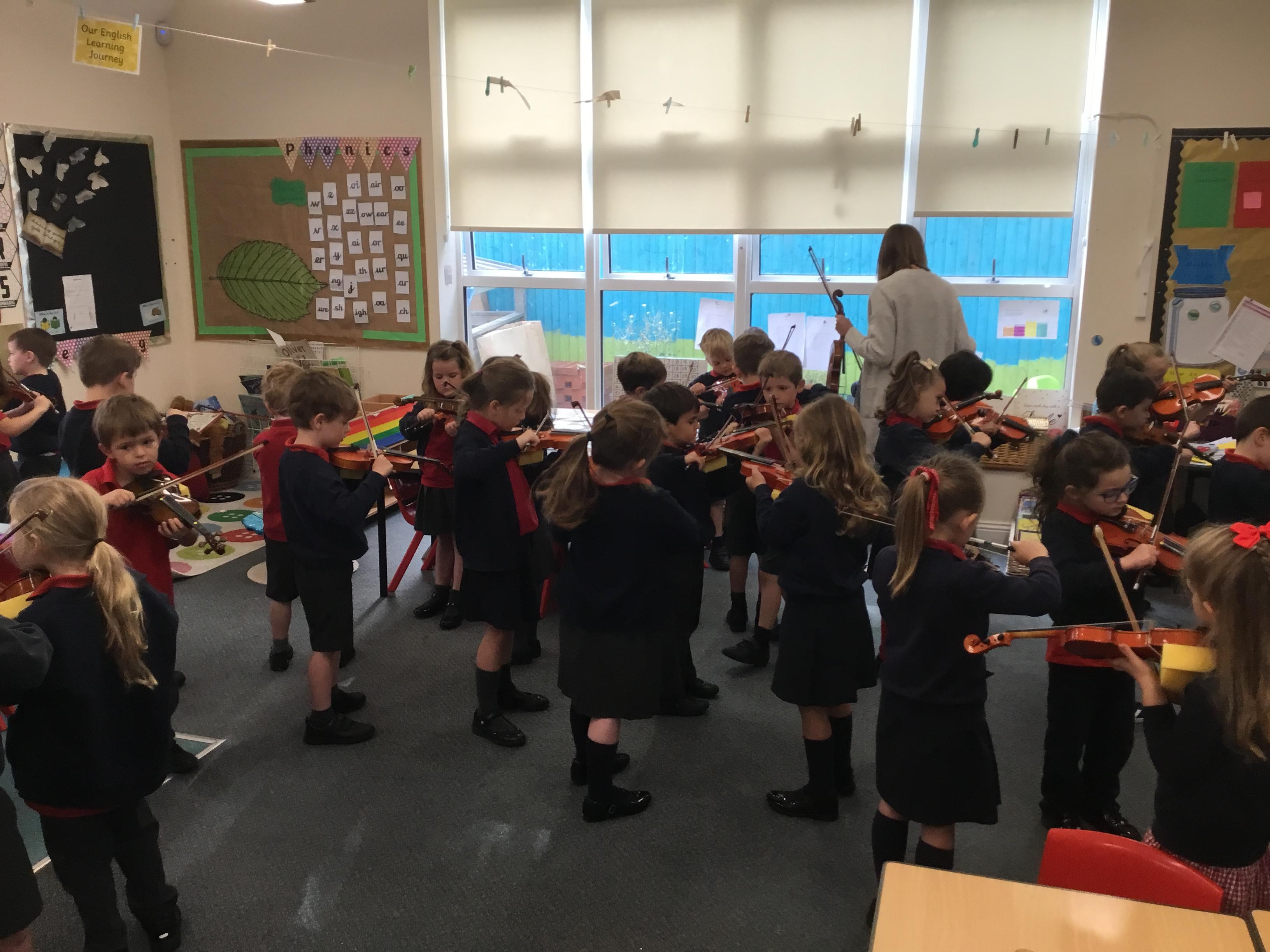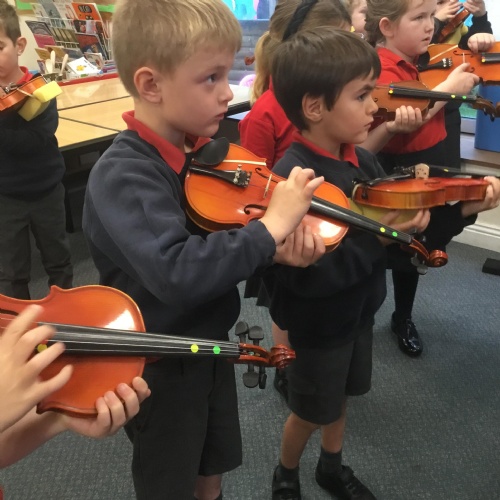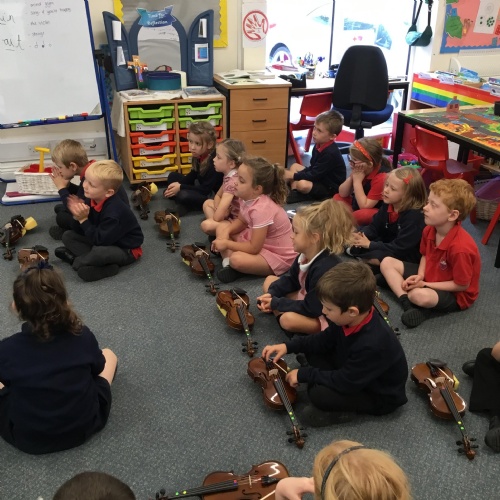Our first violin lesson with Mrs Russell in Year 1