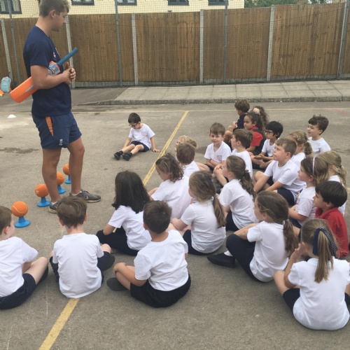 We really enjoyed our first cricket lesson last Friday. We learnt to hold the bat and hit the ball. We also practised our throwing and catching skill. Here are our “champion catchers.”
