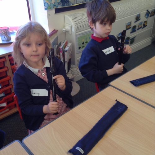 We have been using percussion today and hope to put it with the recorders tune next week.